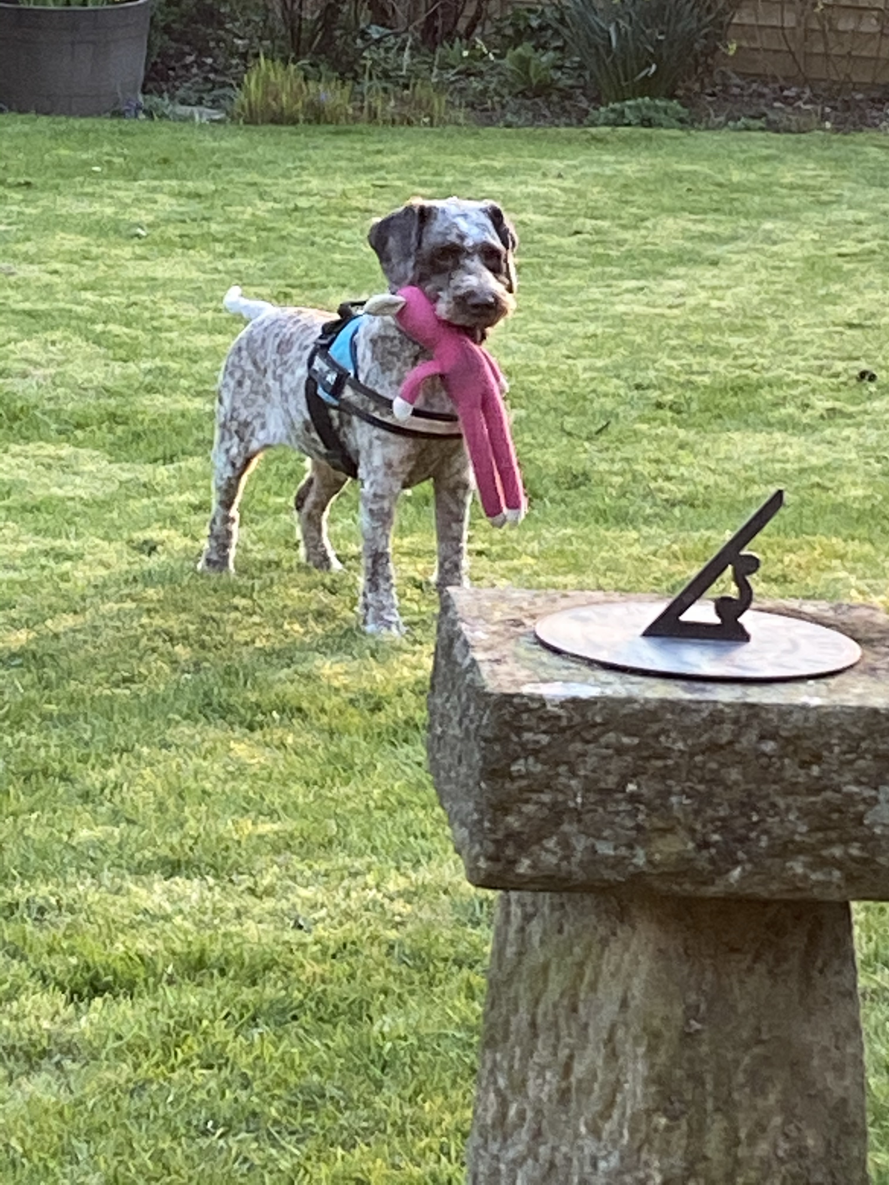 While the evenings stay fine, have been enjoying happy hour with a G&T in Dad’s back garden. Lottie enjoys taunting Chloe by pinching her toys and tearing round the garden, begging to be chased.