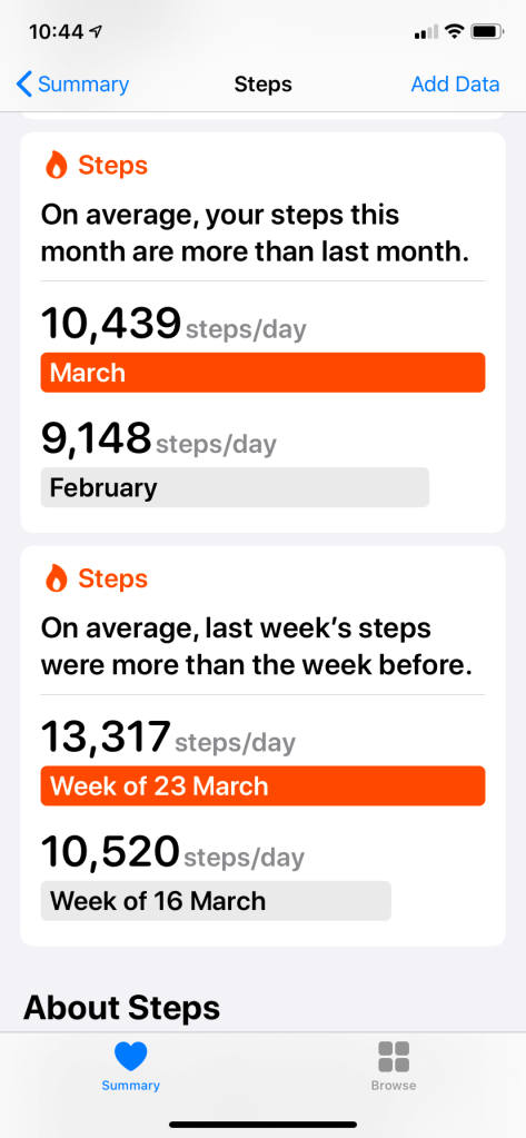 The weather’s not so nice but I’ve been walking loads. I’m able to stay well away from anyone else in the countryside. I go out twice, once for my permitted “daily exercise” with the dog and again to use my “helping the vulnerable” allowance in the early evening when I walk Chloe too. I hope we don’t get locked in more severely…