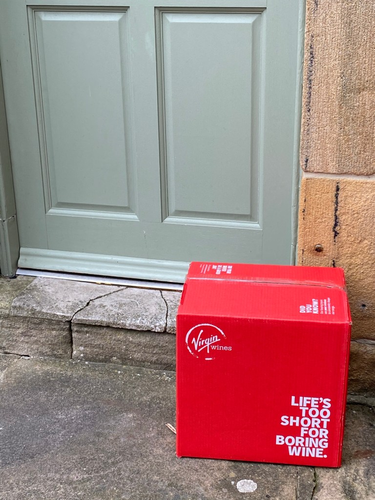 The arrival of wine supplies from Virgin was a cheering sight when I got back from dog walking
