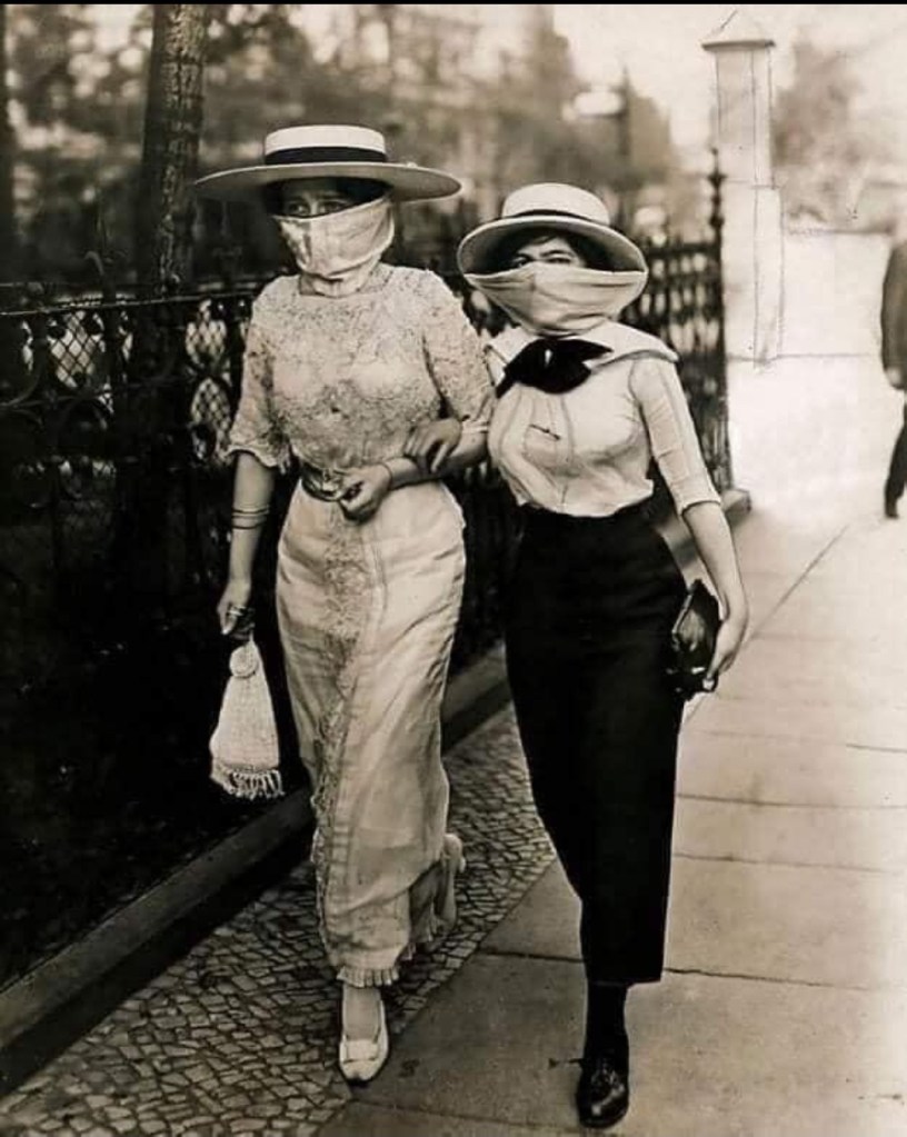 Yesterday, Italian friends were sharing photos of the Spanish flu pandemic in Italy about 100 years ago. Everyone was out and about in the streets and boarding trams together, but wearing masks.