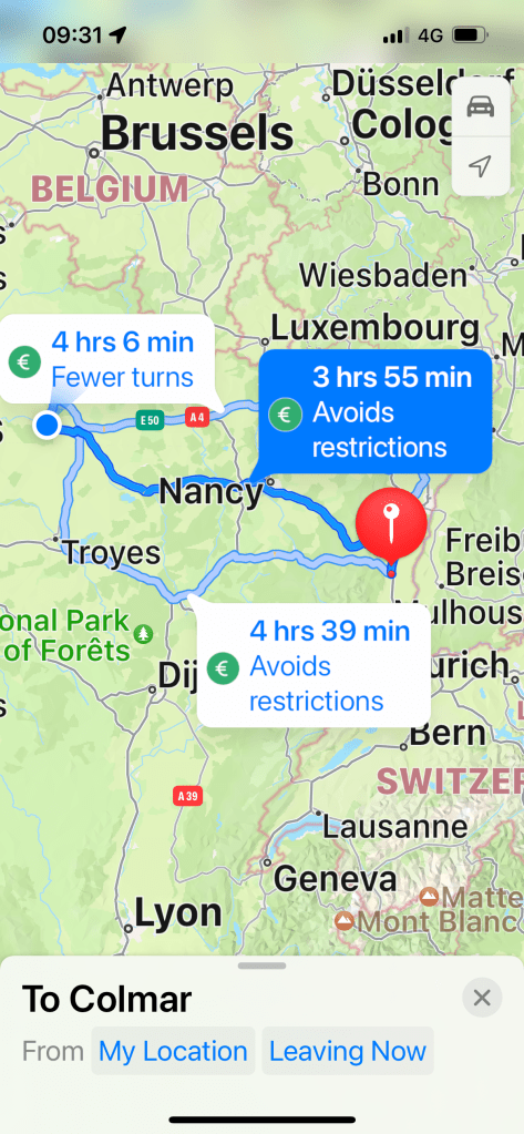 We had a pretty good drive, especially through the pretty champagne-growing villages around Épernay, and arrived in Colmar by 3:30. It was a tad hot to venture forth straight away, so we hung around until 5.30