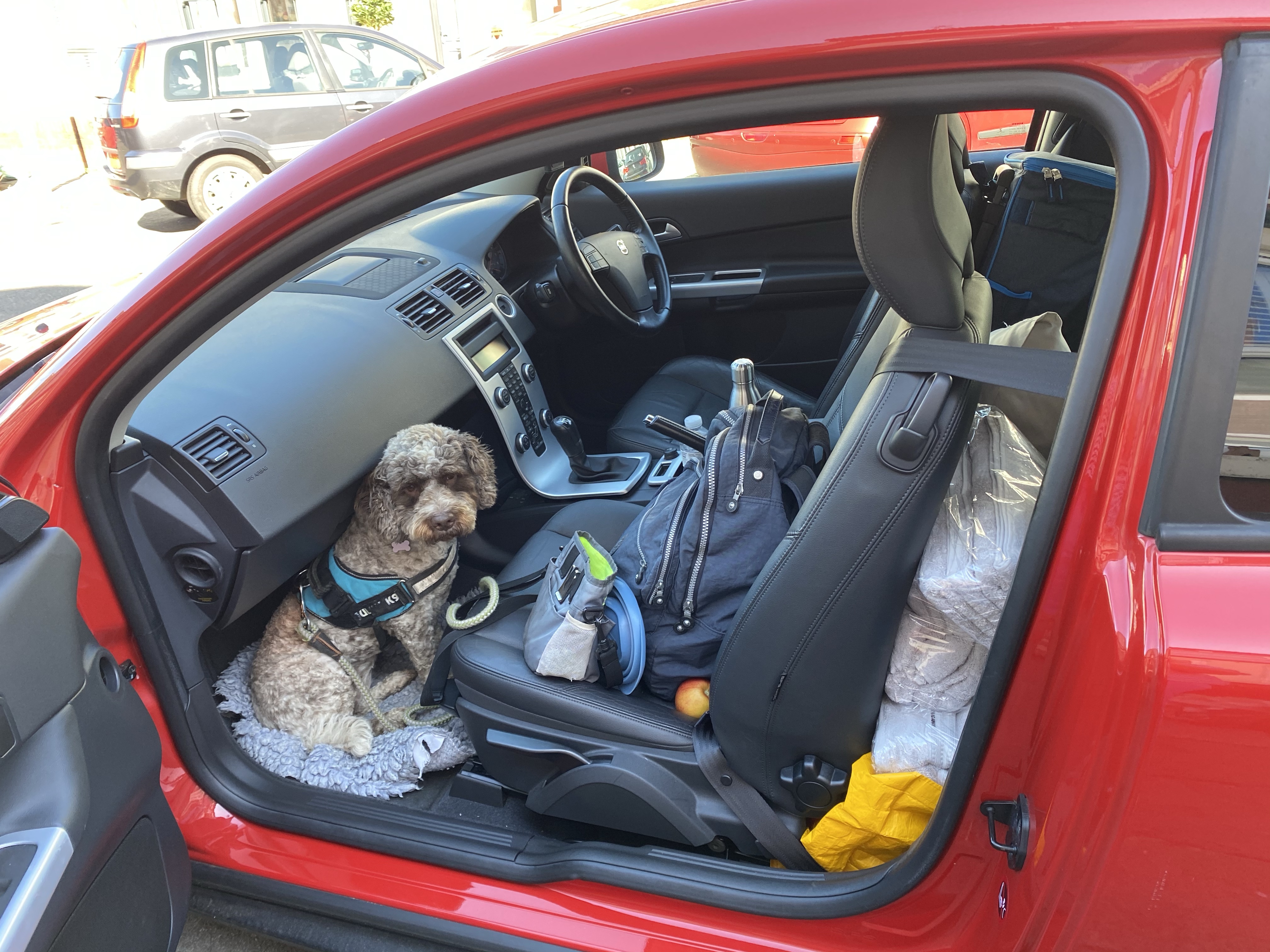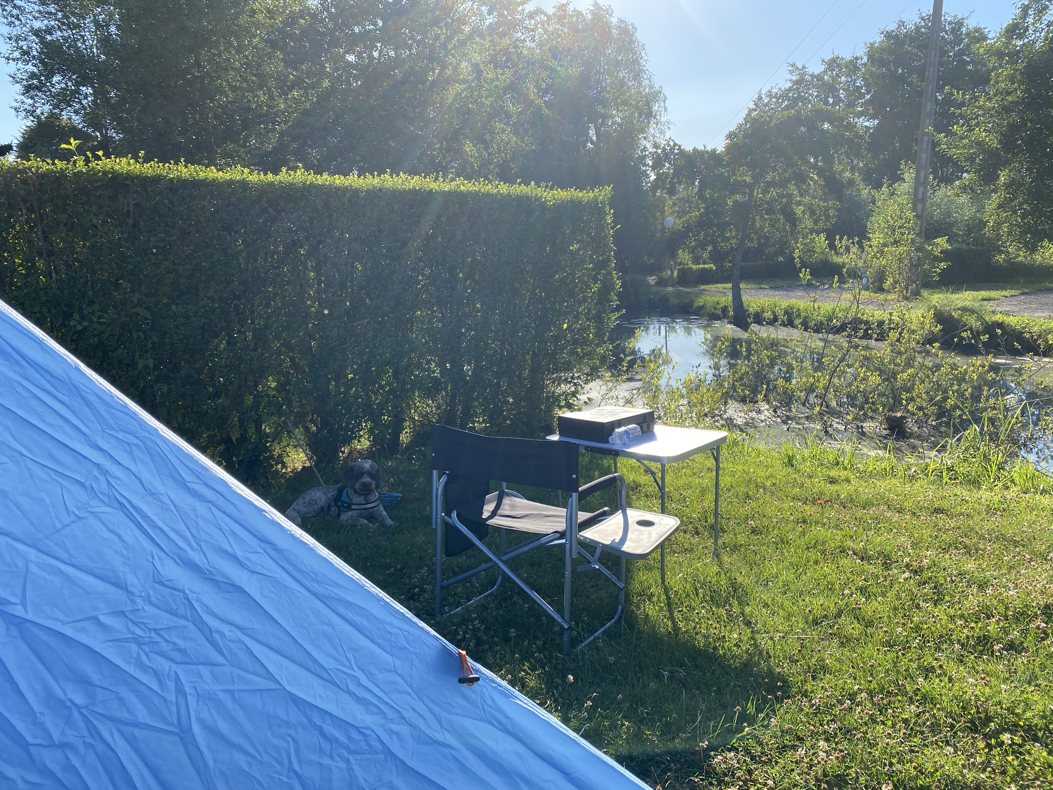 There’s plenty of space around to roam with Lottie, but it’s too hot to go far and I have to keep her on the lead because otherwise she gets covered with burrs. It’s her third year here so I’m starting to let her free to roam round the grounds.